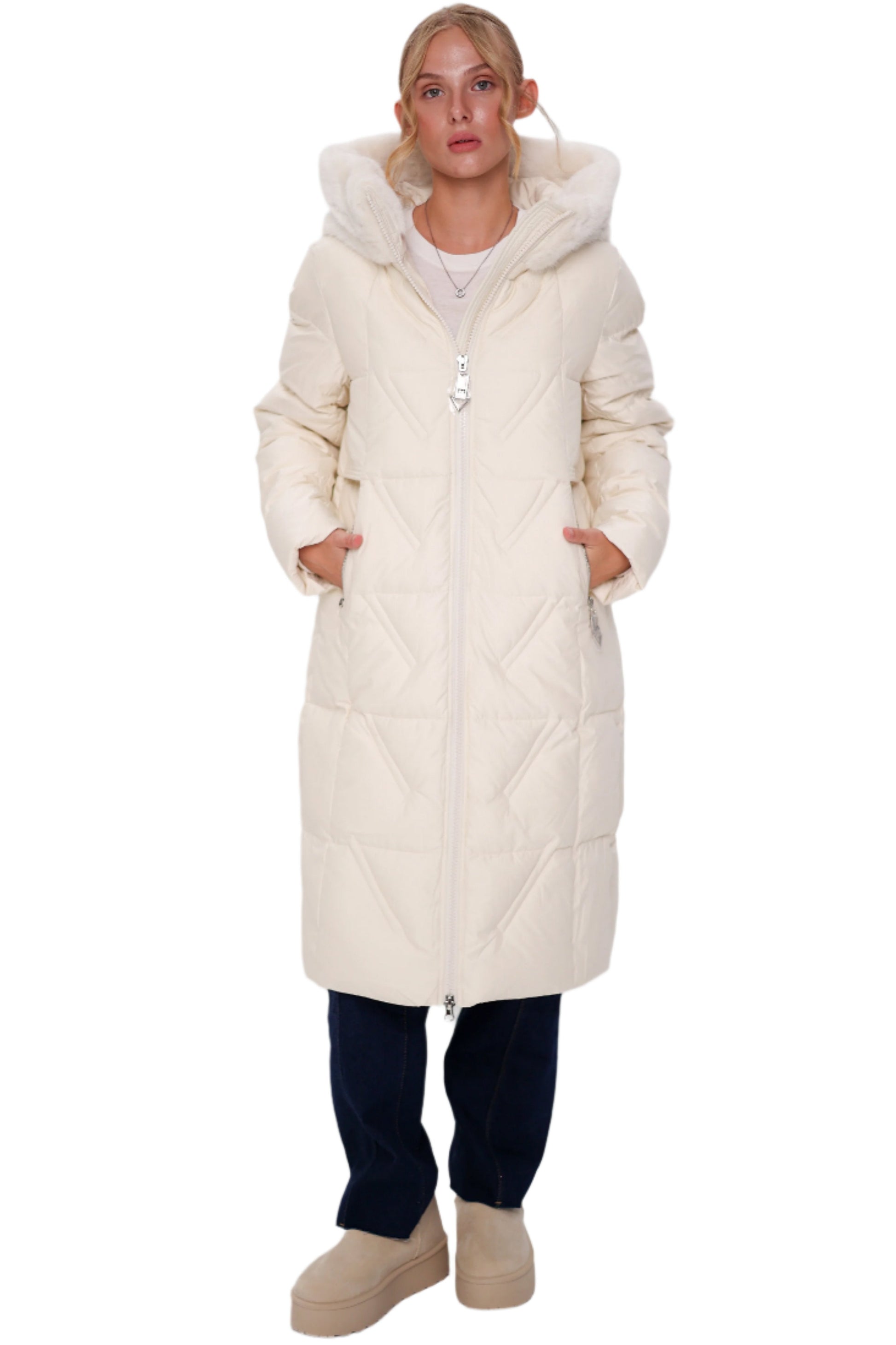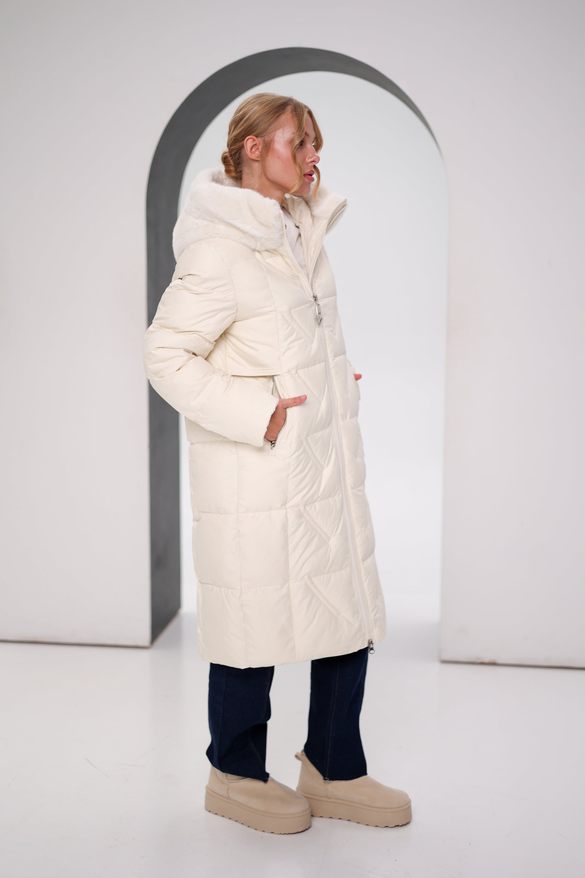 The quilted pattern traps in the heat without adding bulk, while the hood with a detachable fur trim and a host of thoughtful finishing touches ensure comfort and coziness in a variety of weather conditions. Yes, it's safe to say nothing is keeping us from an outdoor expedition — even if it’s a walk to the mailbox and back.